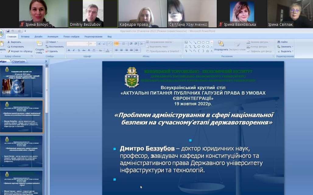 Кафедрою права ВТЕІ ДТЕУ проведено Всеукраїнський круглий стіл на тему «Актуальні питання публічних галузей права в умовах євроінтеграції»