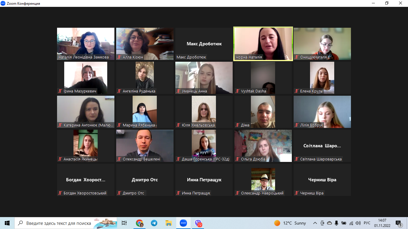1 листопада 2022 року кафедрою туризму та готельно-ресторанної справи було проведено круглий стіл на тему «Туризм під час війни: реалії та перспективи розвитку».