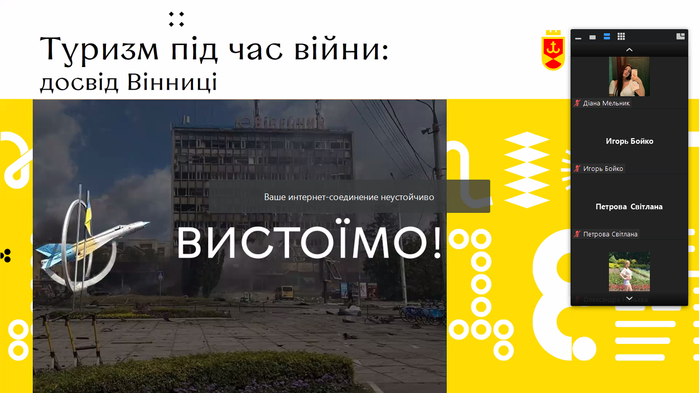 - Олександр Вешелені, директор Департаменту маркетингу міста та туризму Вінницької міської ради, з доповіддю на тему «Стан та тенденції розвитку туристичної галузі під час війни: досвід м. Вінниці»;