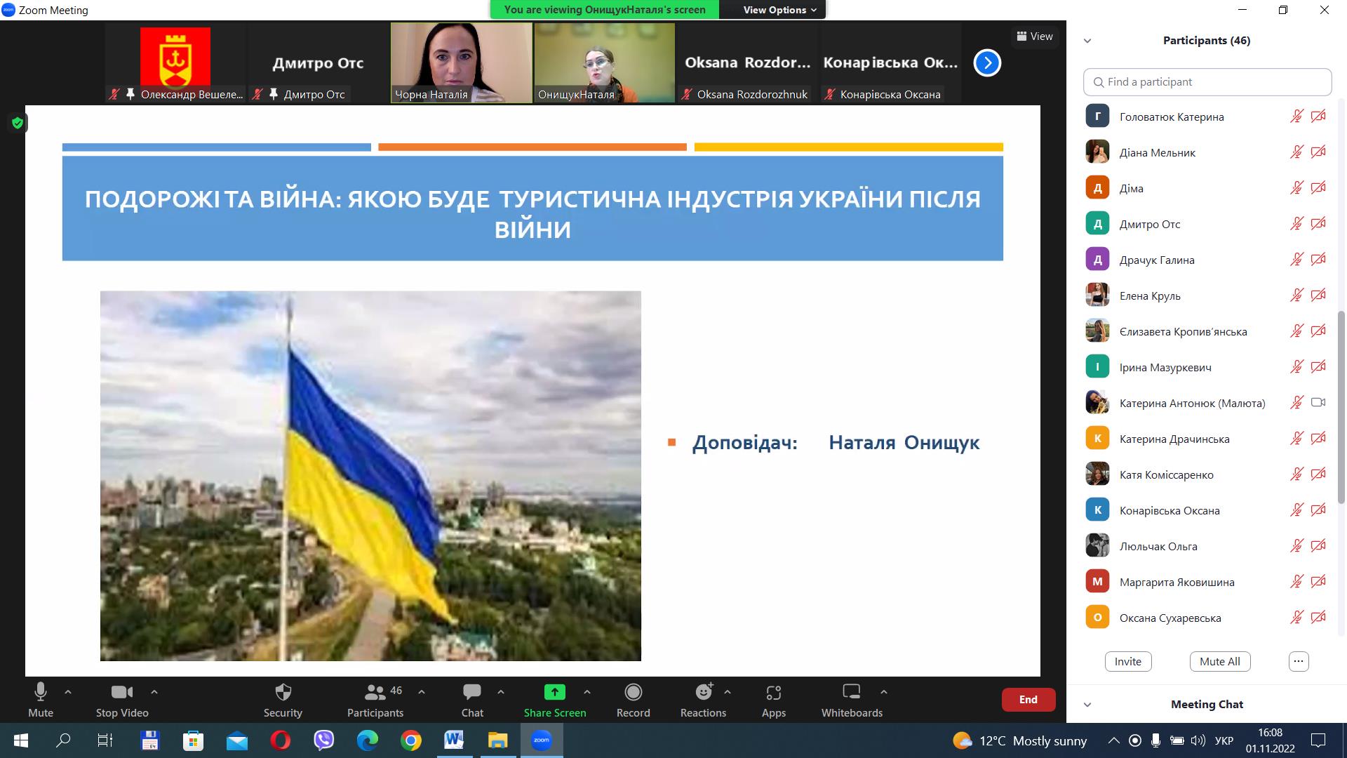- Наталя Онищук, доцент кафедри туризму та готельно-ресторанної справи Вінницького державного торговельно-економічного інституту ДТЕУ, канд. екон. наук, доцент, з доповіддю на тему: «Подорожі та війна: якою буде туристична індустрія України після війни».