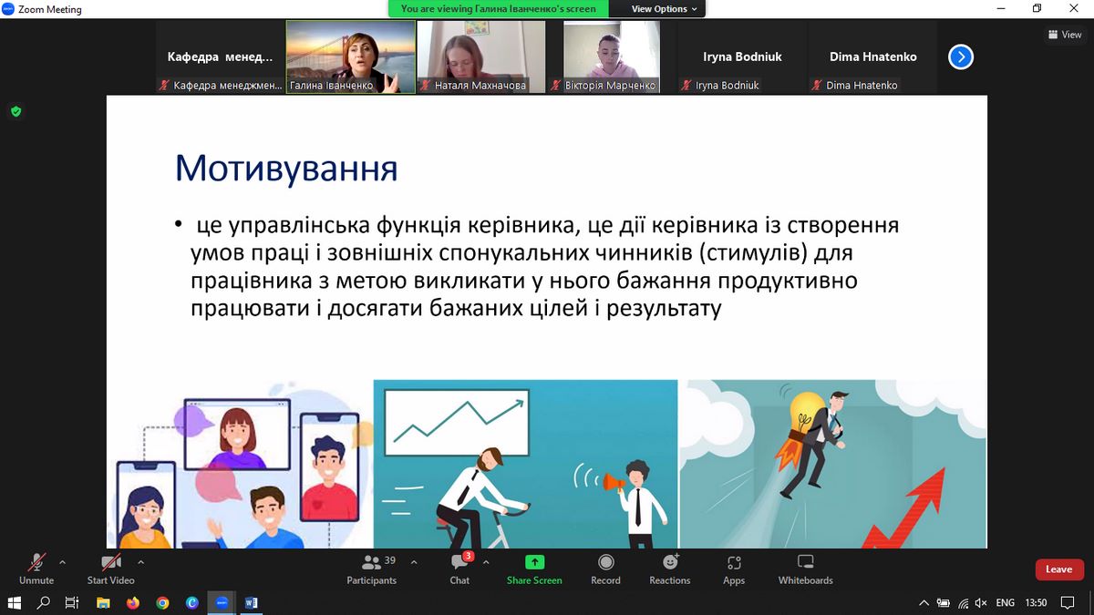 В ході лекції Галина Іванченко презентувала теоретичні аспекти мотивування персоналу в органах публічної влади, в свою чергу, Костянтин Герасимюк ознайомив студентів з правовим механізмом та практичними кейсами мотивації державних службовців Міжрегіонального управління Національного агентства України з питань державної служби у Вінницькій, Житомирській та Хмельницькій областях. Під час лекції здобувачі вищої освіти отримали вичерпні відповіді на свої питання щодо практичного досвіду розбудови системи мотивації в публічній організації.