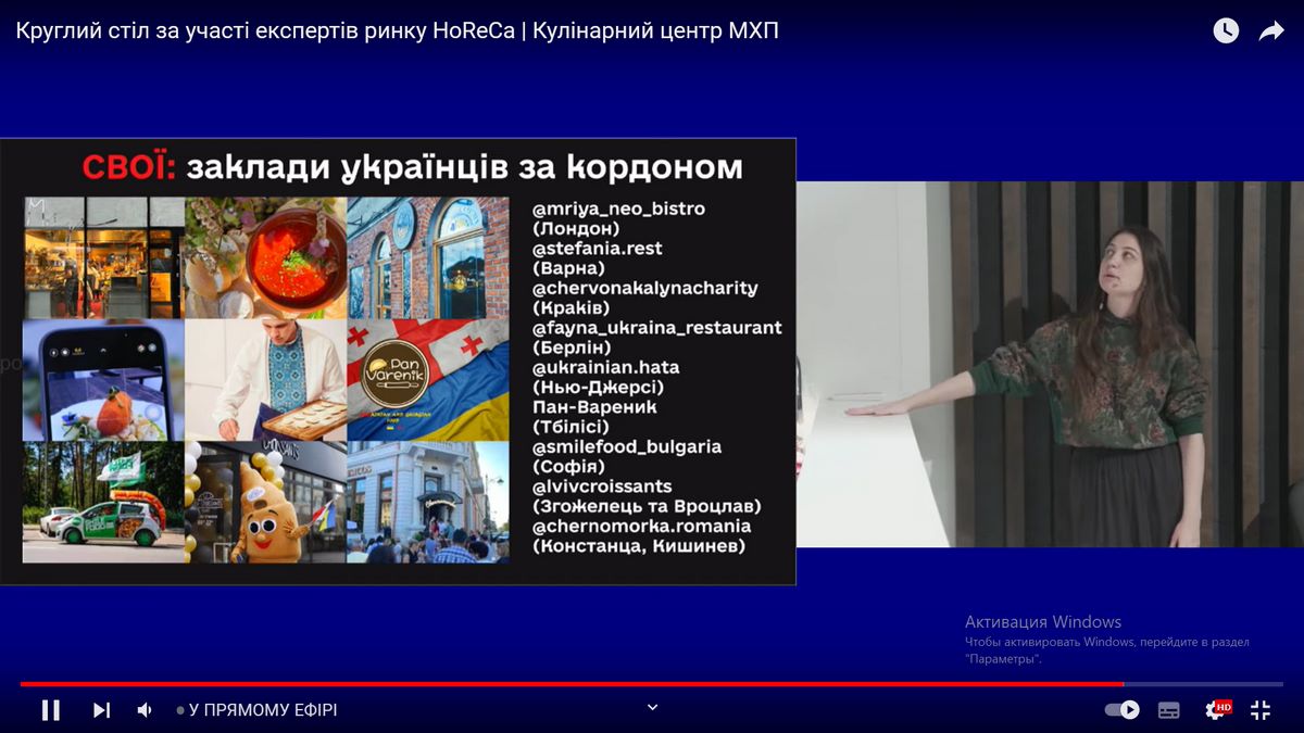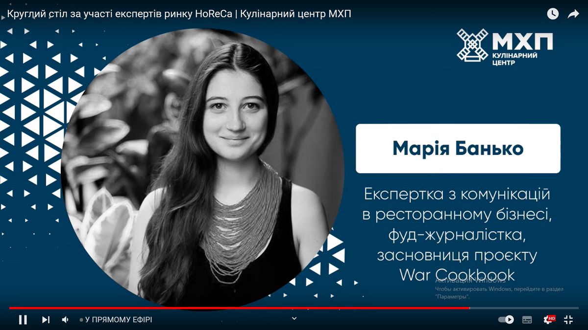 Видами сучасного фуд-бізнесу, антологією war cooking’s історій поділилася Марія Банько – експертка з комунікацій в ресторанному бізнесі, фуд-журналістка, засновниця проєкту «War Cookbook».