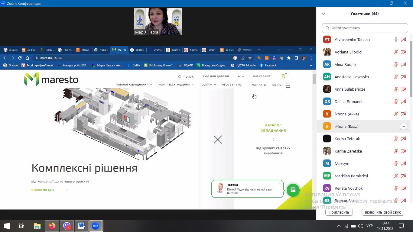 14 листопада 2022 року здобувачі вищої освіти за спеціальністю 241 «Готельно-ресторанна справа» та науково-педагогічні працівники кафедри туризму та готельно-ресторанної справи відвідали гостьову лекцію на тему «Основи пароконвектоматів: їх функції та роль на кухні закладів ресторанного господарства».