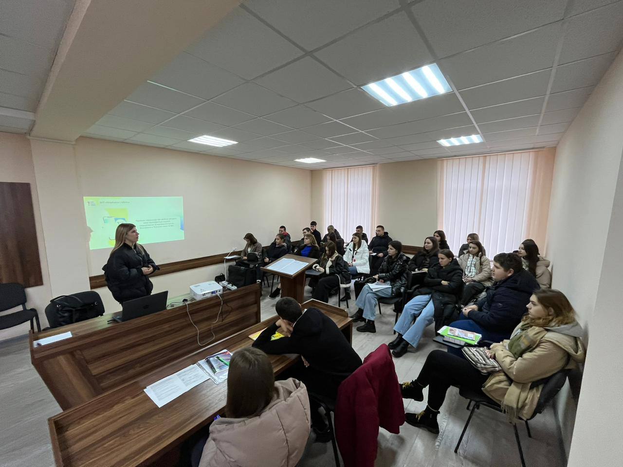 15 листопада 2022 для студентів першого курсу спеціальності «Право» був проведений майстер клас на тему «Кібербезпека в умовах воєнного стану», який провела інспектор відділу протидії кіберзлочинам у Вінницькій області Департаменту кіберполіції НПУ старшим лейтенантом Мариною Задвернюк.
