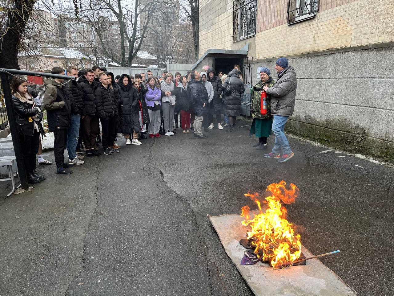 Під час тренування студенти дотримувалися усіх правил безпеки та здобули практичні навички щодо користування вогнегасником та поведінки під час небезпечних ситуацій.