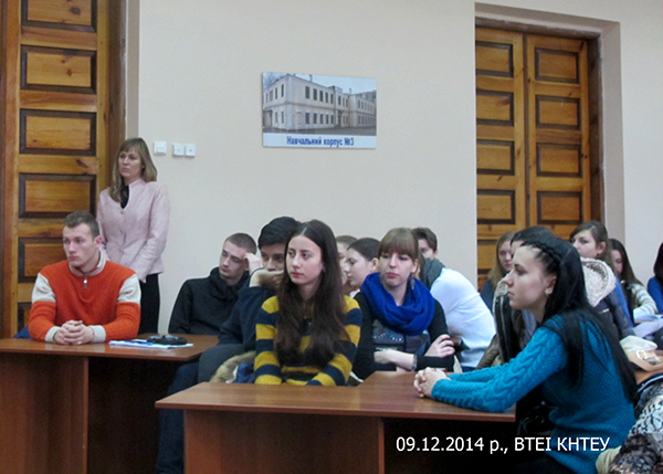 9 грудня 2014 року в аудиторії №17 першого корпусу ВТЕІ КНТЕУ в рамках «Всеукраїнського тижня права» для груп студентів першого курсу була проведена зустріч з Вірою Онисимівною Драчинською – начальником відділу реєстрації, систематизації нормативно-правових актів, правоосвітньої роботи та правової допомоги Головного управляння юстиції у Вінницькій області. Тема лекції: «Права людини: зміст, реалізація і захист». Лектор, як досвідчений фахівець, з багаторічним досвідом роботи, розповідала присутнім про основні напрямки роботи управляння юстиції, про порядок надання безоплатної правової допомоги, особливо стосовно захисту прав основних свобод людини, про порядок реєстрації і ліквідації суб’єктів підприємницької діяльності та громадських організацій.