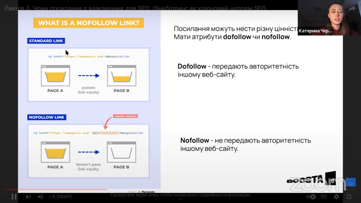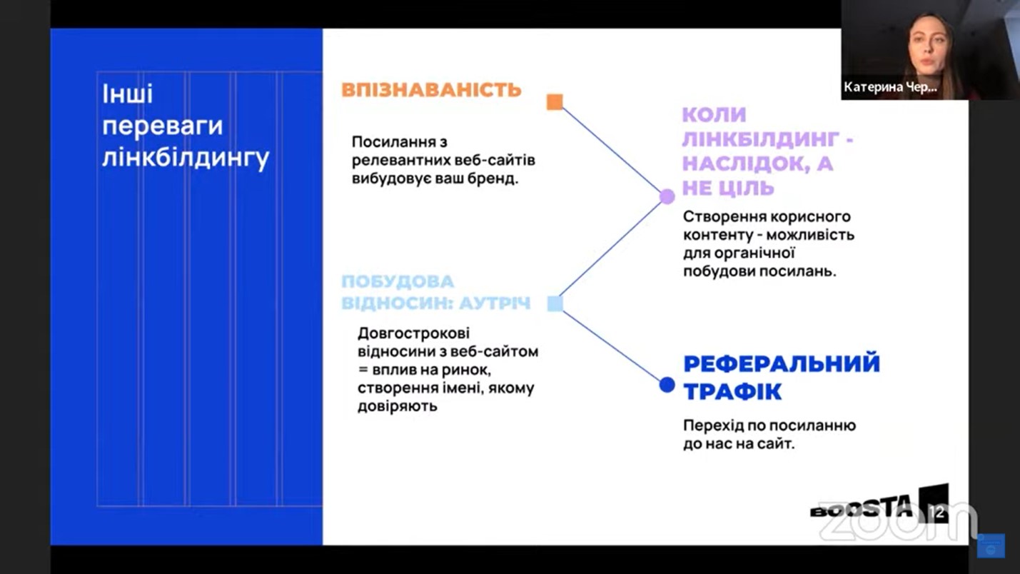 Пані Катерина Черняк розповіла про посилання і чому вони важливі для SEO, лінкбілдинг та його переваги, основні складові посилання, роль лінкбілдингу для SEO та пошукових систем та як Google оцінює посилання. Маркетологи-магістри ВТЕІ ДТЕУ задавали питання в чаті та отримали змістовні відповіді. Вдячні пані Катерині Черняк за цікаву онлайн лекцію.