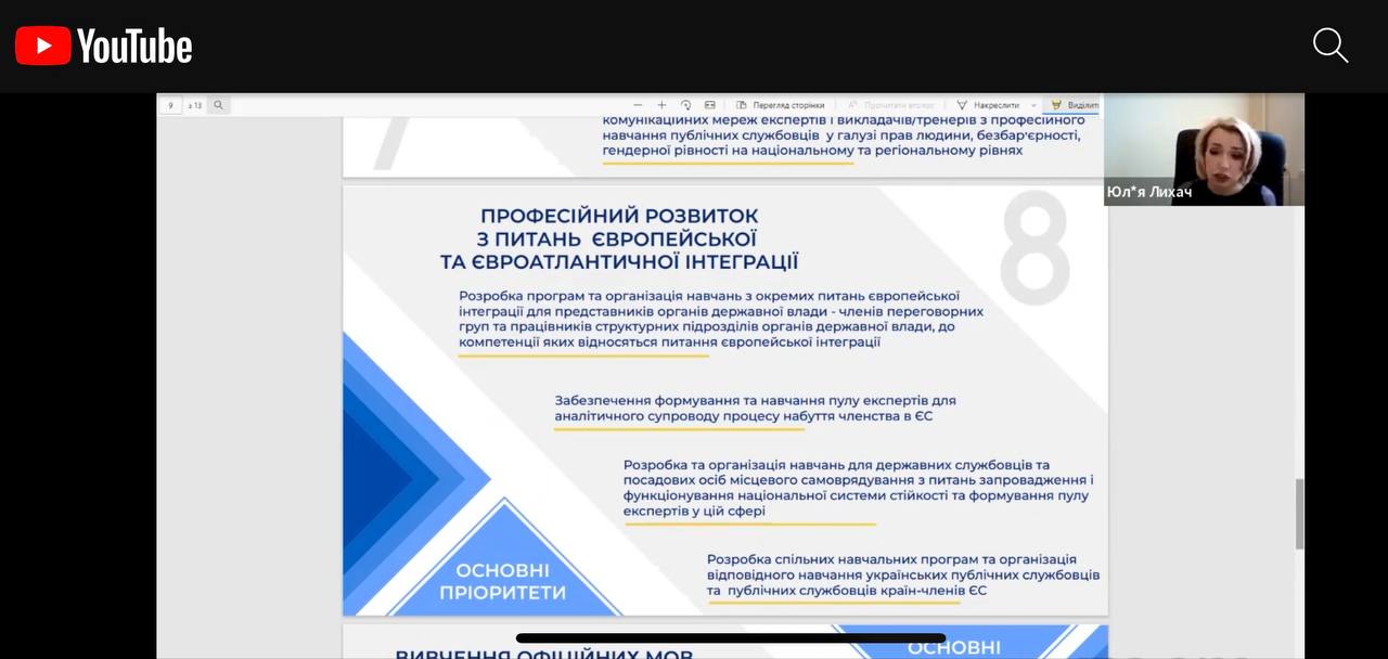 ⁃ Наталія Алюшина, голова Національного агентства України з питань державної служби, представила пріоритети формування та професійного розвитку публічних службовців на сучасному етапі;