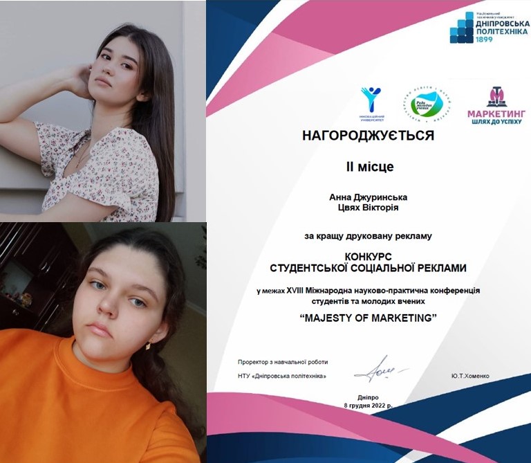 Здобувачі ОС «бакалавр» спеціальності 075 «Маркетинг» брали участь у конкурсі студентської соціальної реклами у межах XVIII Міжнародної науково-практичної конференції студентів та молодих вчених «MAJESTY OF MARKETING» (м. Дніпро) та здобули перемогу.