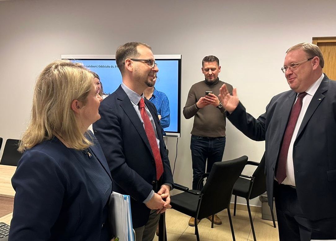 Розпочалась зустріч з відвідування Департаменту інвестицій та розвитку Маршалківської управи Свентокшиського воєводства, під час якої членам делегації презентували основні напрямки діяльності установи, однією з яких, є об’єднання підприємств з науковим сектором з метою підготовки кваліфікованих кадрів. Крім того, було ознайомлено зі стратегією розвитку воєводства до 2027 року, механізмами підтримки підприємців та прикладами залучення коштів ЄС.