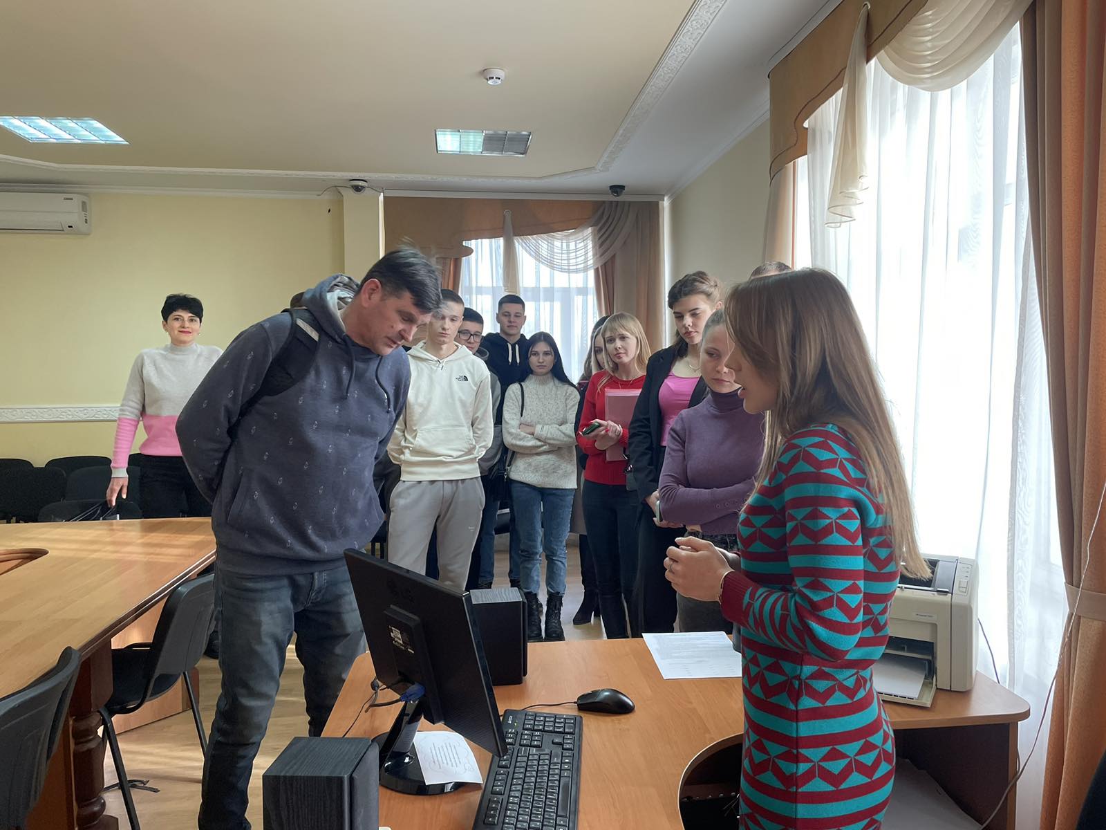 Здобувачі вищої освіти отримали можливість вивчити досвід судового адміністрування як складової публічного механізму забезпечення судової системи. Найперше, прес-секретар Ольга Петрівна Кравець познайомила з особливостями забезпечення людиноцентричного підходу до здійснення правосуддя у Вінницькому окружному адміністративному суді. Фахівці суду розповіли про специфіку цифрового документообігу, роботи в хмарному середовищі та сервісі відеоконференцзв’язку у Єдиній судовій інформаційно-телекомунікаційній системі.