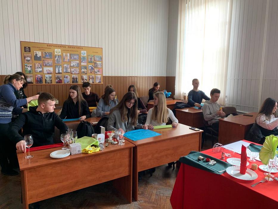 З нагоди Дня всіх закоханих, 14 лютого 2023 року для учнів 9-Б та 10-А класу КЗ «Вінницький ліцей №10» асистент кафедри туризму та готельно-ресторанної справи Олена Пахомська провела майстер-клас «Святкове тематичне сервірування столу та техніки складання столових серветок». Мета заходу - розвиток естетичного смаку, моторики рук, рухової та емоційної пам'яті, формування знань про столовий посуд, приладдя, столову білизну, вміння підбирати їх у процесі сервірування тематичного святкового столу.
