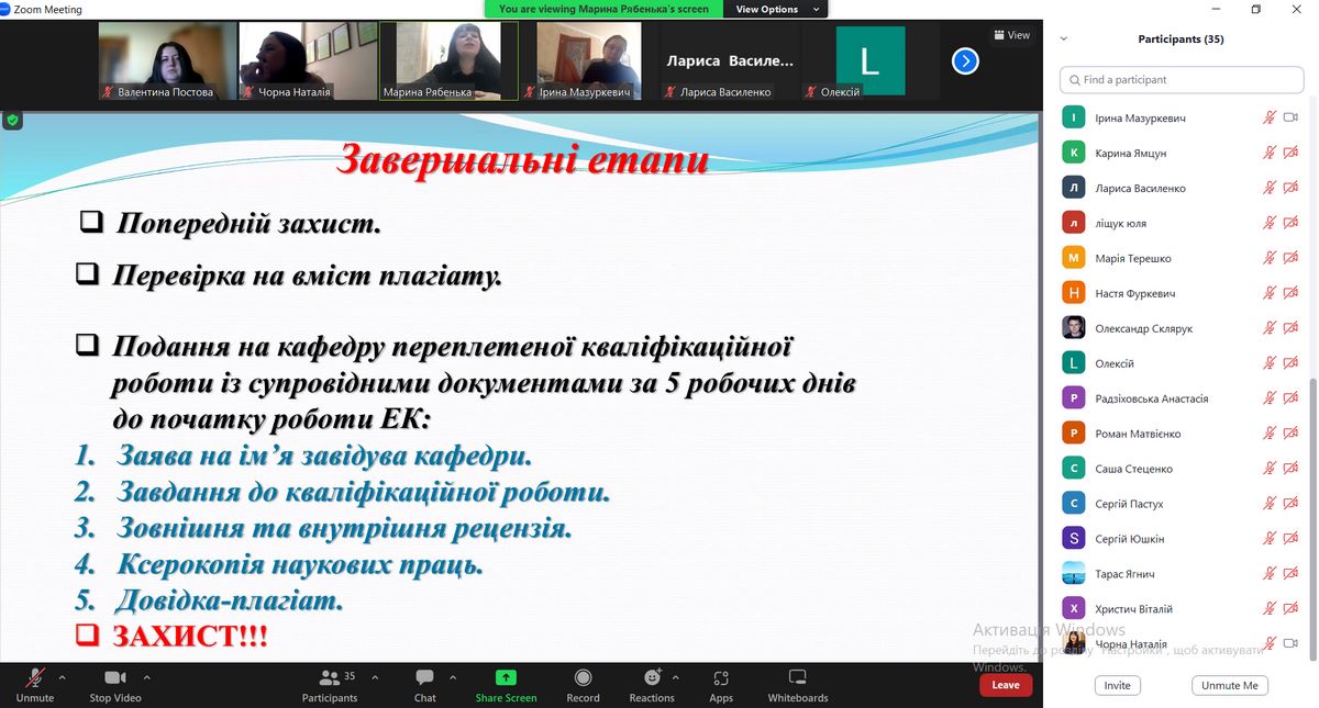 Проведений семінар був корисним та пізнавальним для здобувачів вищої освіти, оскільки дозволив зорієнтуватися в існуючих вимогах щодо написання кваліфікаційної роботи та отримати відповіді на наявні щодо цього запитання.
