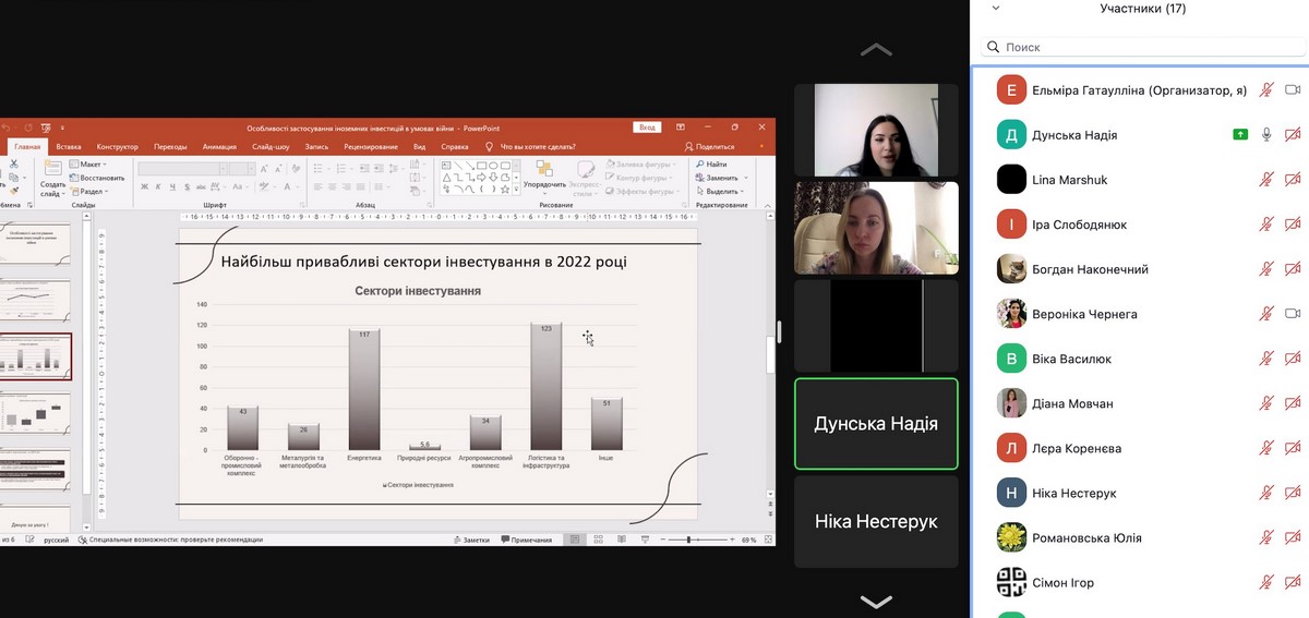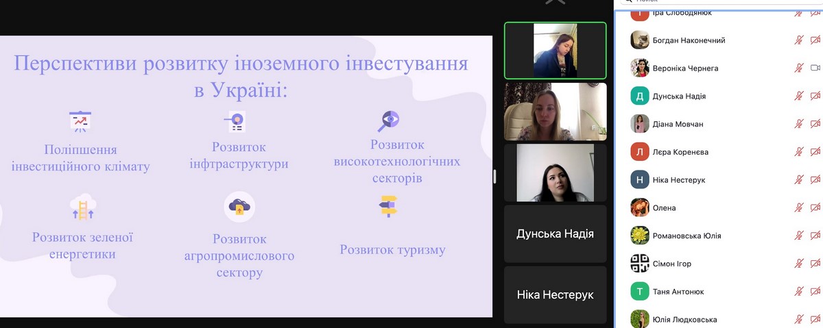 1 березня 2023 року відбулося засідання наукового куртка на тему «Проблеми та перспективи залучення іноземних інвестицій в Україну».