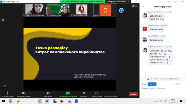 1 березня 2023 року кафедрою обліку та оподаткування було проведено відкрите засідання наукового гуртка «Сучасний бухгалтер» під головуванням гаранта освітньої програми «Облік і оподаткування», доцента кафедри Гладій Ірини.