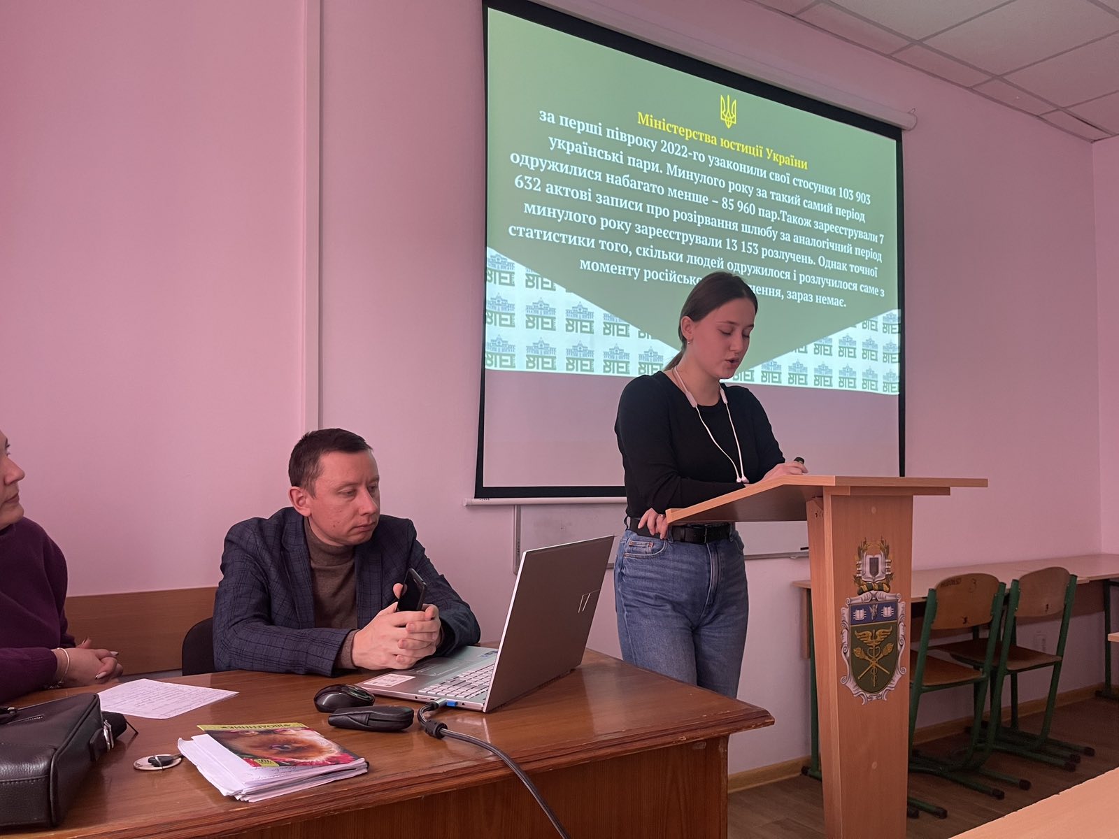 Науковий інтерес та жваву дискусію викликали доповіді: «Статистика в умовах відродження економіки країни» (Слободянюк Анастасії – студентки групи Л-11д), «Статистика візиту лідерів іноземних держав в Україну за рік повномасштабної війни» (Онищук Юлії – студентки групи ПУА-11д), «Спостереження мовної ситуації з початку повномасштабної війни» (Мурієнко Катерина – студентки групи ПУА-11д), «Достовірність статистичної інформації в умовах військового стану» (Люльчак Дарини – студентки групи ОО-11д), «Світ без статистики» (Липівська Ірина, Полторак Дар’я – студентки групи МР-12д).