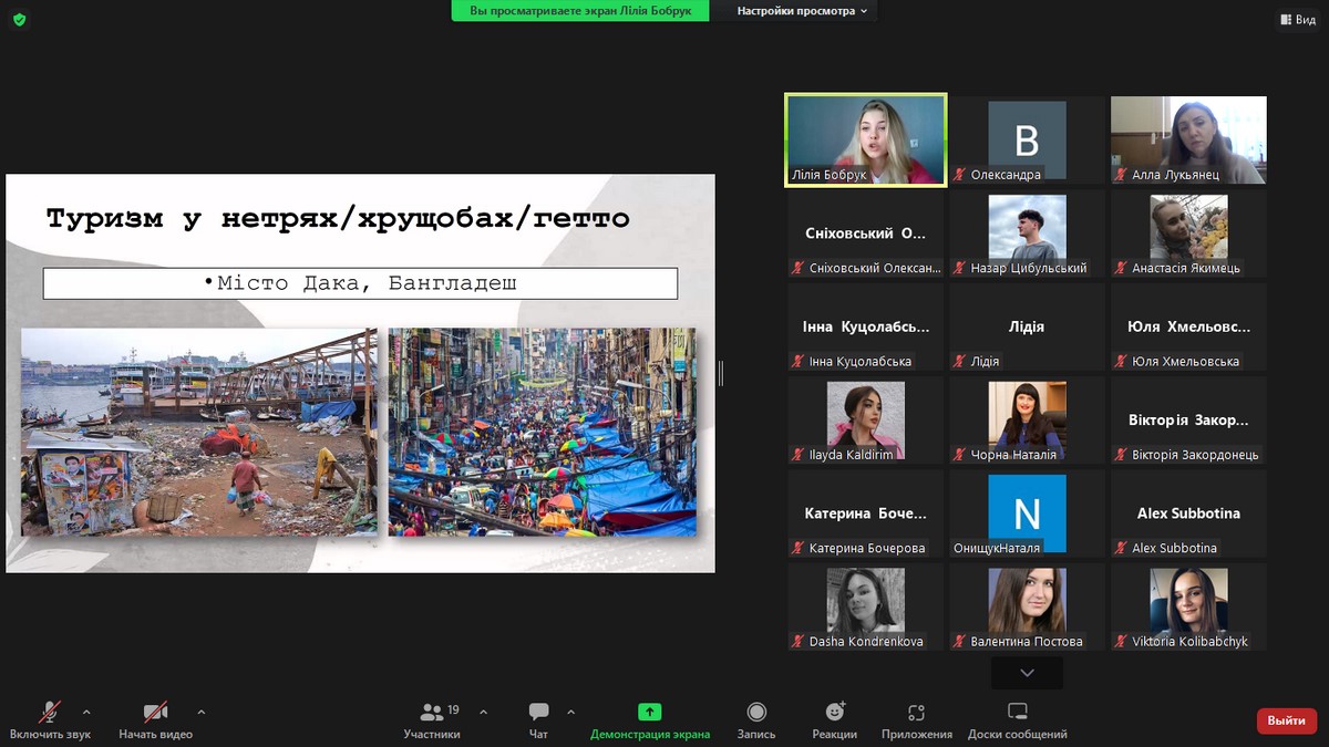 В наукових дискусіях активну участь брали студенти спеціальності «Туризм». Свої інформативні доповіді презентували: Бобрук Лілія (група Т-31д), Куцолабська Інна (група Т-31д), Цибульський Назар (група Т-31д).