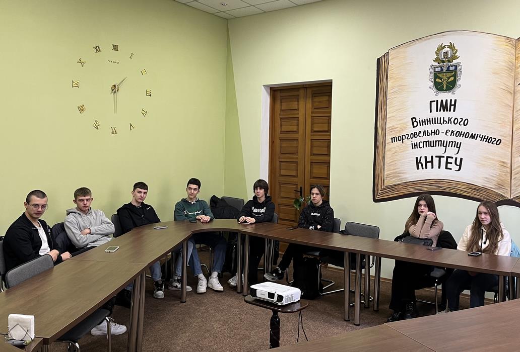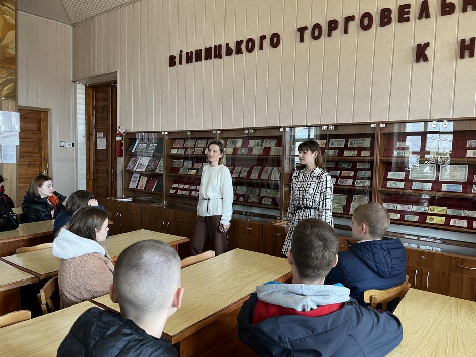 1 березня 2023 року для учнів 11-А класу КЗ «Вінницький ліцей №33» старший викладач кафедри туризму та готельно-ресторанної справи Алла Лук'янець провела цікаву ознайомчу екскурсію інститутом. Школярі відвідали головний корпус, що є історичною будівлею, в якій наприкінці ХІХ–на початку ХХ ст. розміщувалося Реальне училище та де склав іспит на звання народного вчителя сам М. М. Коцюбинський. Доцент кафедри фінансів Ліна Маршук та студентка групи ФБСС-21д Олена Харковенко познайомили школярів також з Музеєм грошей, який функціонує на базі інституту, де представлені цікаві та цінні експонати, що відображають розвиток грошей і грошового обігу України та світі.