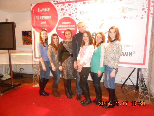 КОМАНДА КЛУБУ МАРКЕТОЛОГІВ ВТЕІ КНТЕУ у складі 7 чоловік на чолі з науковим керівником к.е.н., доц. Ковінько О.М. 17 грудня 2014 р. прийняла участь у Восьмому Національному Фестивалі Соціальної Реклами, який проходив у Освітньо-культурному центрі «Майстер-клас» (Київ, вул. Лаврська, 16) за організації Спілки рекламістів України.
