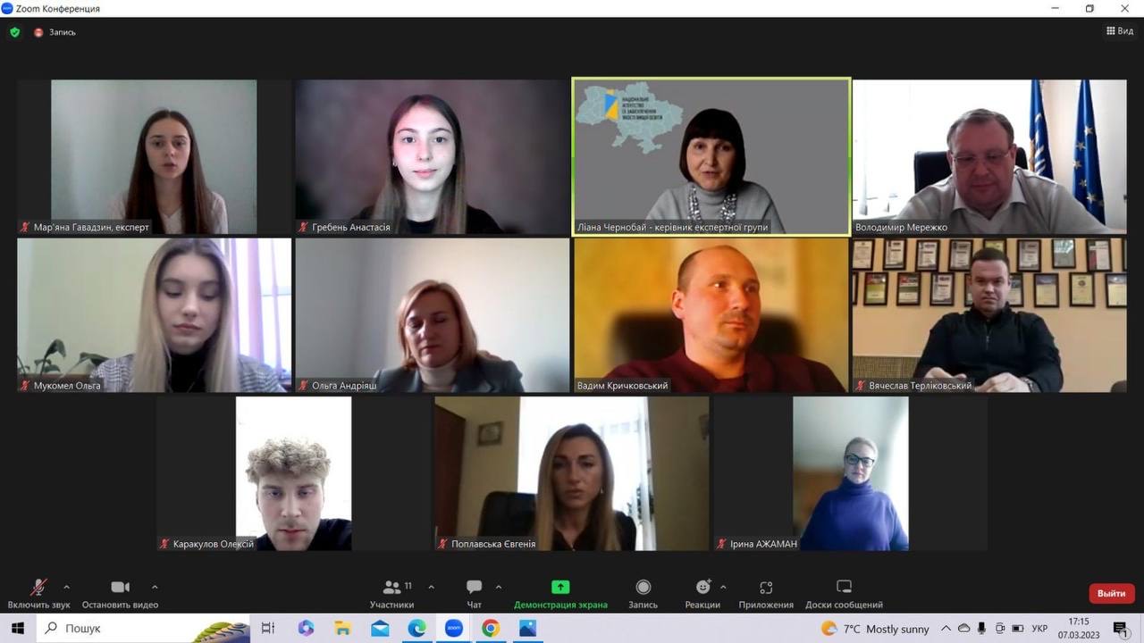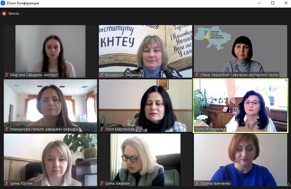 З 7 по 9 лютого 2023 року у Вінницькому торговельно-економічному інституті ДТЕУ проходила акредитаційна експертиза освітньої програми «Менеджмент» спеціальності 073 «Менеджмент» освітнього ступеня «молодший бакалавр». Процедура пройшла згідно з узгодженою програмою роботи експертної групи Національного агентства із забезпечення якості вищої освіти. Зустрічі відбулись у дистанційному режимі на платформі Zoom із експертною групою, до складу якої входили Ліана Чернобай (керівник групи), Ірина Ажаман, Мар’яна Гавадзин та гарантом освітньої програми «Менеджмент» Людмилою Бондарчук і керівництвом інституту на чолі із Наталією Замковою.