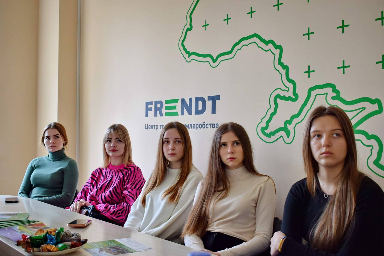 10 березня 2023 року студенти спеціальності «Менеджмент» відвідали офіс інноваційної компанії, діяльність якої спрямована на розробку цифрових технологій та базується на інноваційному підході в агробізнесі – ТОВ «FRENDT». Власник компанії Віталій Шуберанський розповів про основні напрямки, специфіку роботи, інноваційні підходи в агросфері, а також зауважив на правильно побудованому менеджменті для успішного керування підприємством. Студенти отримали кейси, які вони мають вирішити в рамках вивчення курсу «Менеджмент».