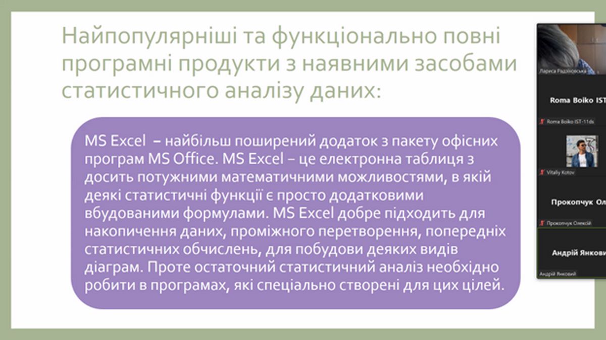 Доповіді студентів стосувались застосування різних програмних засобів для обробки математико-статистичної інформації. Зокрема, йшлося про пакети аналізу даних Statistica, BMDP, EViews, GenStat GraphPad, Prism MathCAD та інші. З доповідями виступили студенти Котов В. (гр. ІСТ-31д), Янковий А. (гр. ІСТ-21д), Бойко Р. (гр. ІСТ-11дс), Корнілов В. (гр. ІСТ-21д). Також студенти обговорювали питання застосування інформаційних технологій, системного аналізу у бізнесі.