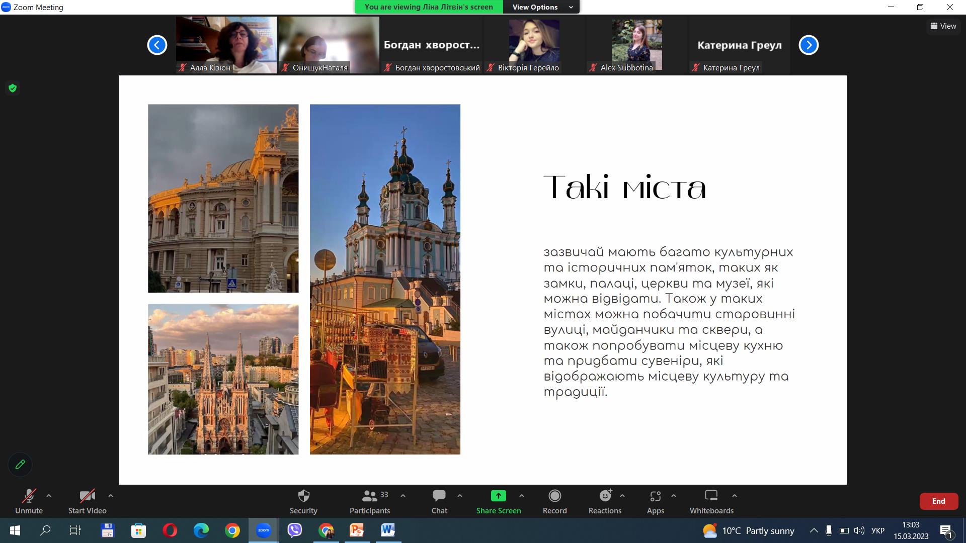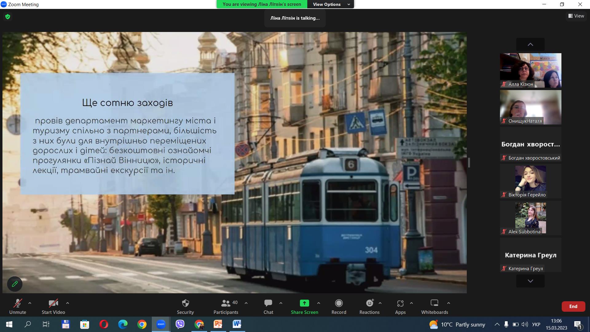 1. Ліна Літвін, гр. Т-42д – доповідь на тему «Історичні міста як центри культурно-пізнавального туризму: розвиток туризму у м. Вінниця в умовах війни».