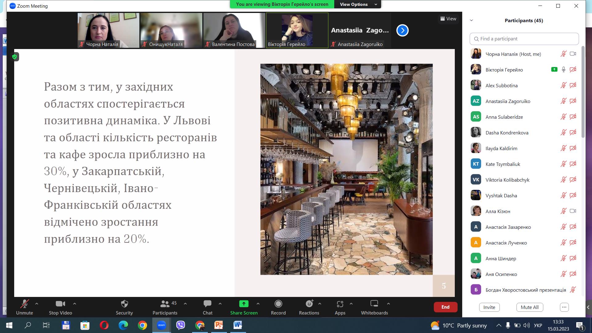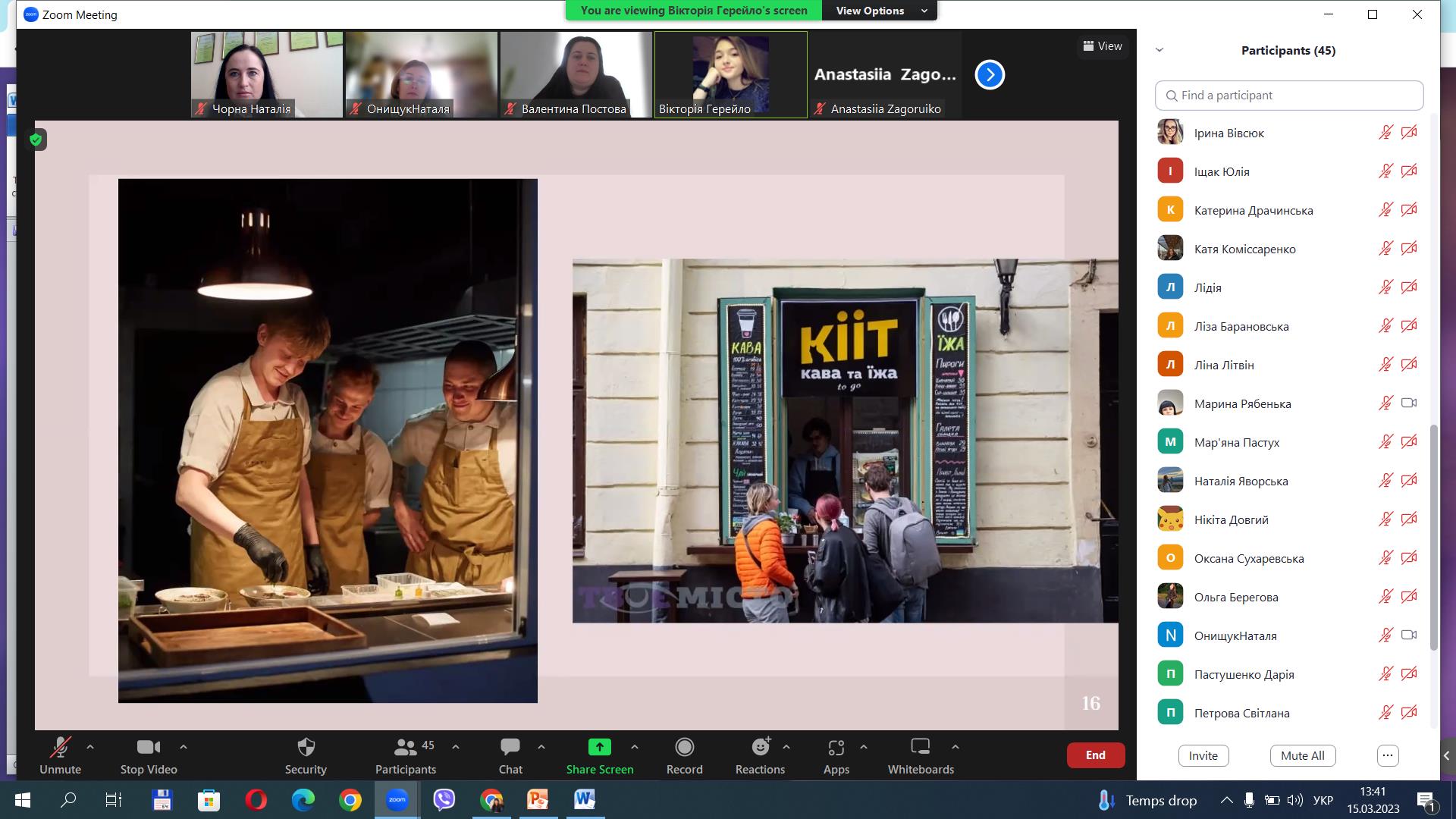 4. Вікторія Герейло, гр. ГРС-41д – доповідь на тему «Організація роботи закладів ресторанного господарства під час війни в Україні».