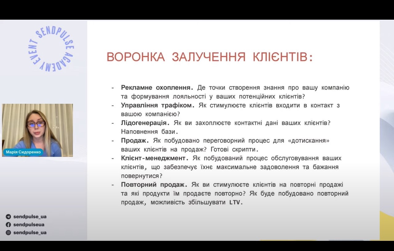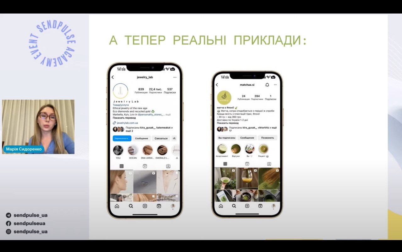 Онлайн-захід був проведений експертом Марією Сидоренко (маркетолог, власниця SMM кооперативу).