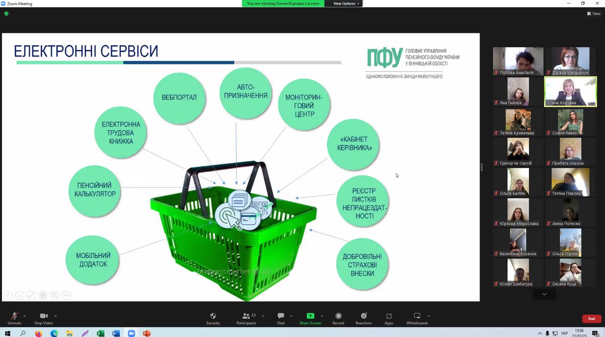 22 березня 2023 року відбувся семінар «Проблеми розвитку пенсійного забезпечення в Україні в контексті соціального захисту» для здобувачів вищої освіти спеціальності 232 «Соціальне забезпечення», спікером на якому виступила начальник Головного управління Пенсійного фонду України у Вінницький області Корчака Олена.