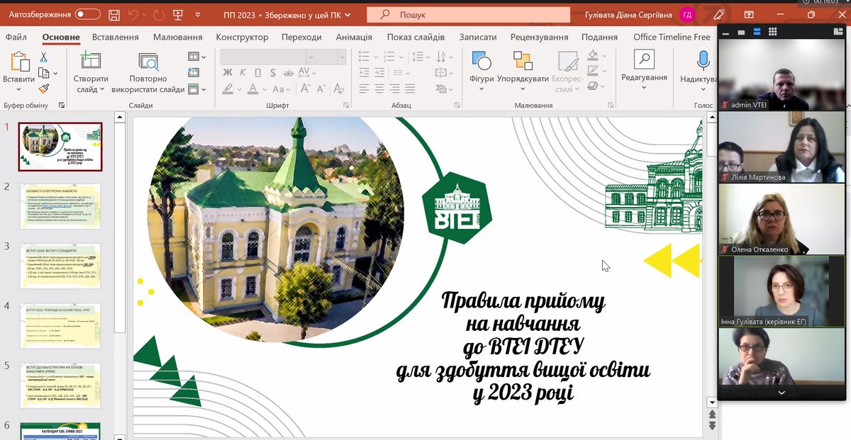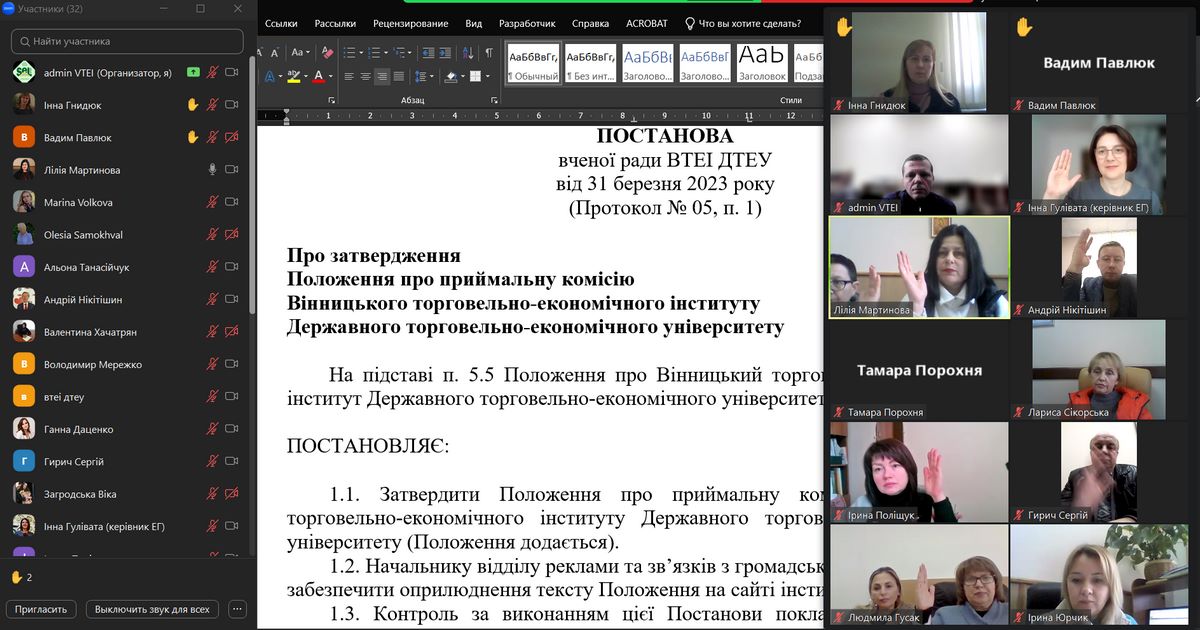 31 березня 2023 року відбулося засідання вченої ради ВТЕІ ДТЕУ, на якому були затверджені документи та ухвалені відповідні рішення згідно порядку денного.