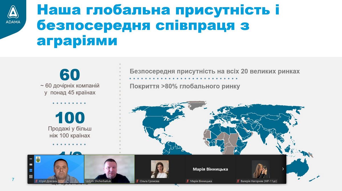 Вадим Щербатюк коротко висвітлив історію успіху та ефективності компанії від моменту створення (1945 р.) до сьогоднішнього етапу її розвитку, коли компанія здійснює продажі більше ніж у 100 країнах світу, має 60 дочірніх компаній у понад 45 країнах, утримує майже половину глобального обсягу продажів на ринках, що зростають.