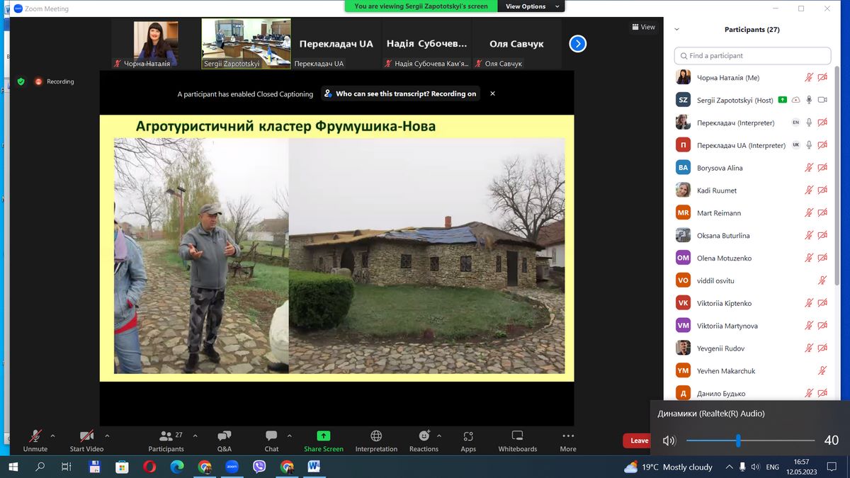 12 травня 2023 року науково-педагогічні працівники кафедри туризму та готельно-ресторанної справи, здобувачі вищої освіти за спеціальністю 242 «Туризм» взяли участь у круглому столі на тему «Розвиток кластерів сільського зеленого туризму в нових реаліях», організованому Київським національним університетом імені Тараса Шевченка за результатами реалізації проєкту «Покращення малого бізнесу та розвиток системи університетської освіти через дослідження та прочування туристичних кластерів у сільській місцевості в Україні», що фінансується Естонським центром міжнародного розвитку.