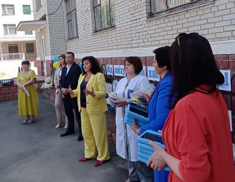 1 червня 2023 року в Міжнародний день захисту дітей представники організаторів проєкту «Реалізація заходів щодо забезпечення добробуту дітей в Україні під час війни» на чолі з Наталією Замковою, директором Вінницького торговельно-економічного інститут ДТЕУ, депутатом обласної ради, членом ГО «Українська Асоціація Маркетингу» урочисто привітали дітей-пацієнтів Вінницької обласної дитячої клінічної лікарні зі святом та передали планшети з центральним сервером, навушники, які пацієнти лікарні матимуть змогу використовувати в процесі лікування.