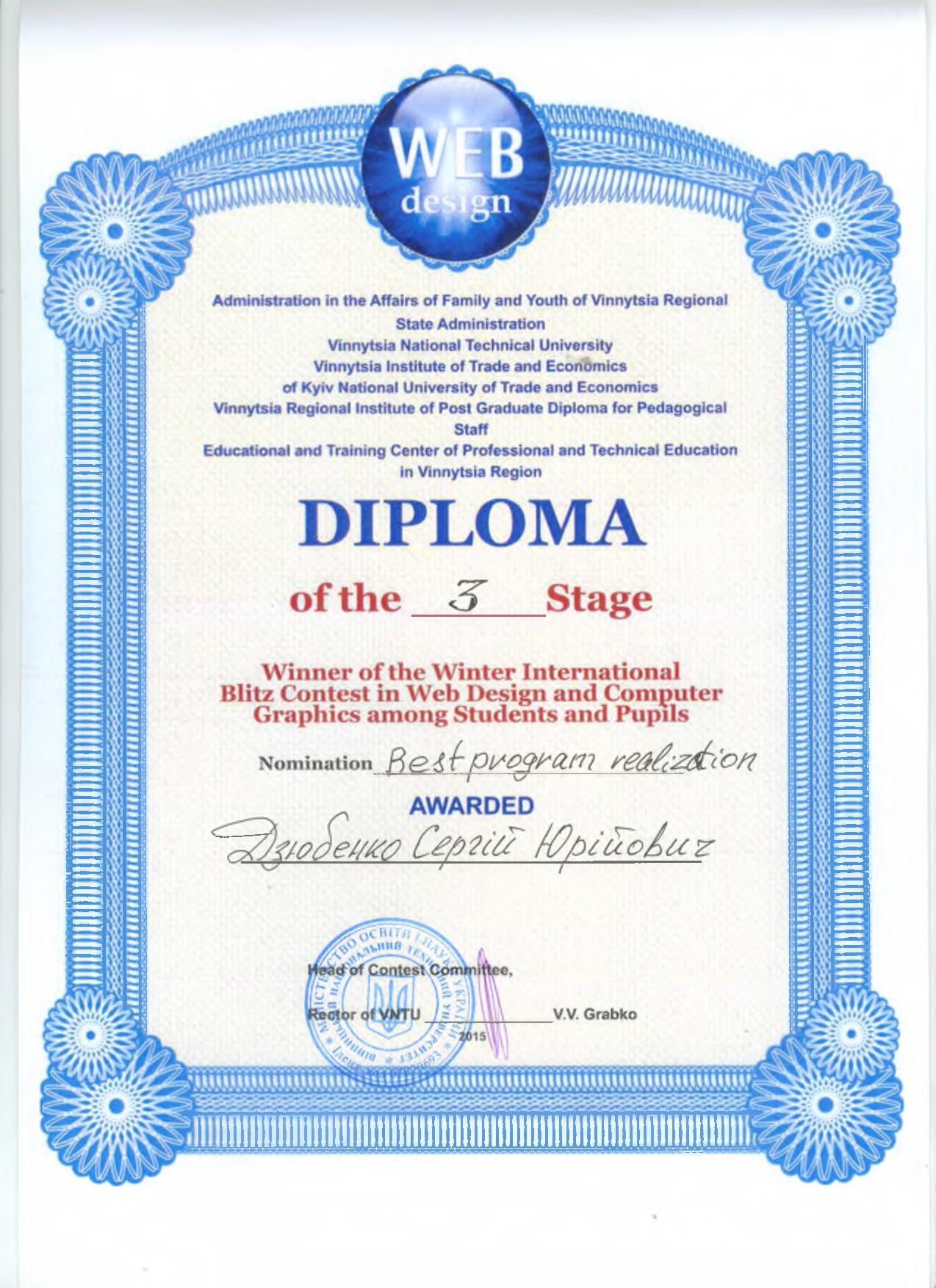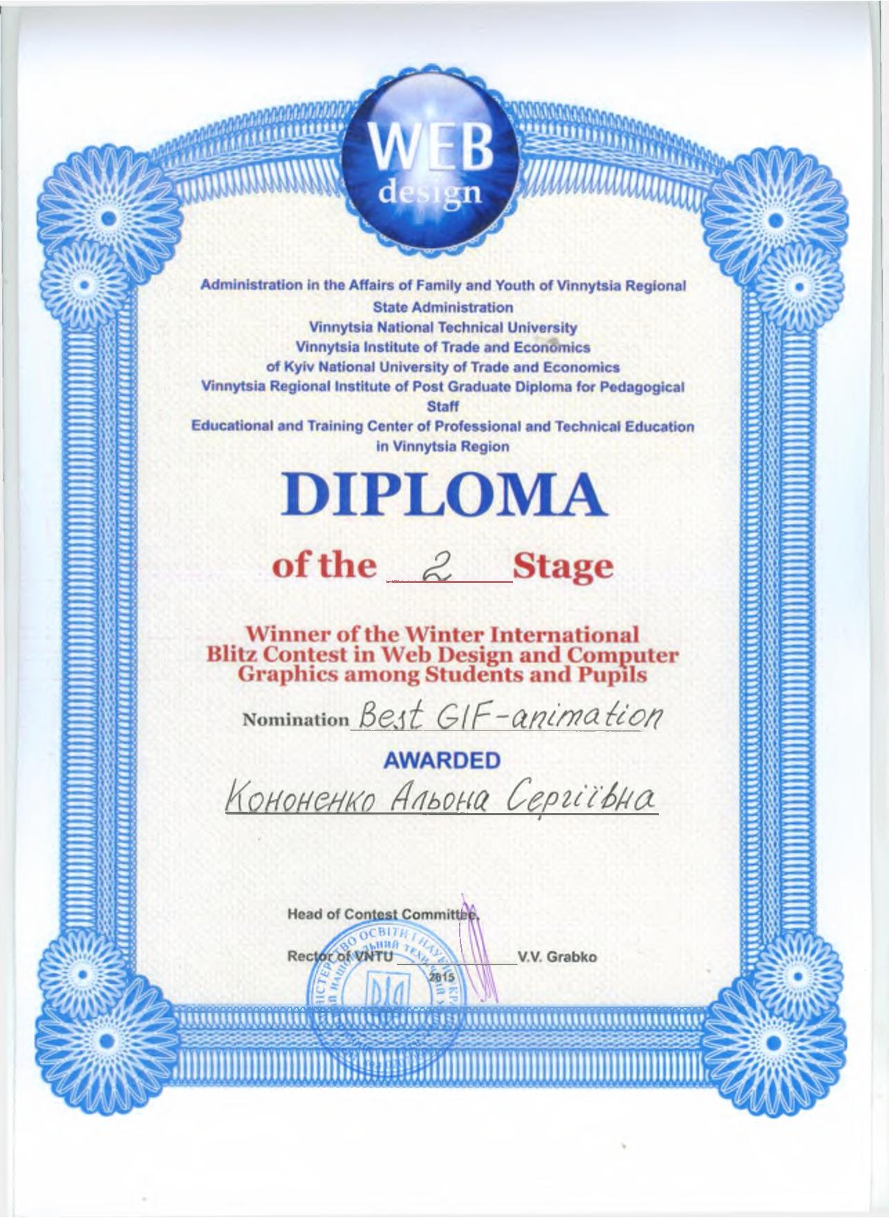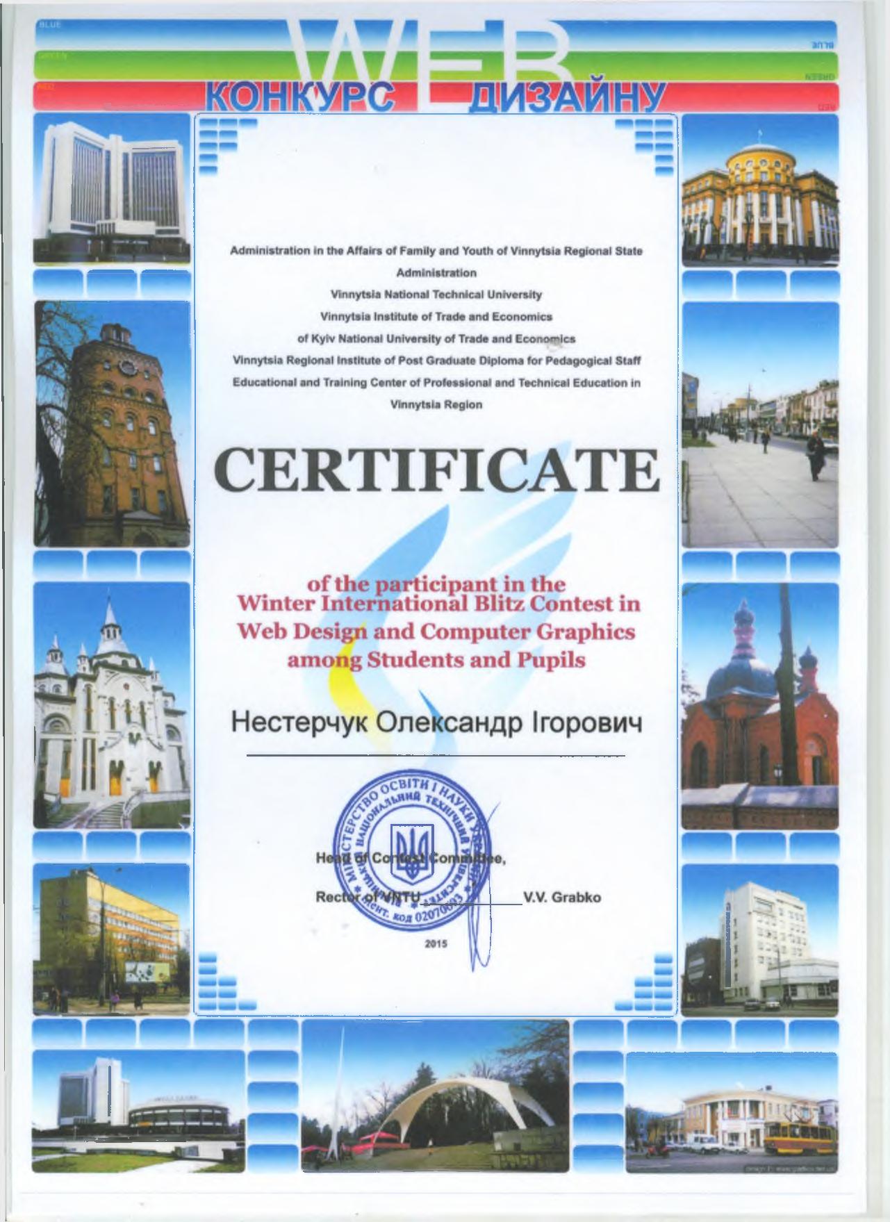 Команда ВТЕІ КНТЕУ взяла участь у другому Міжнародному зимовому бліц-конкурсі з Web-дизайну та комп'ютерної графіки, якій проходив з 26.12.2014 р. по 26.01.2015 р. на базі Вінницького національного технічного університету та зайняла призові місця.