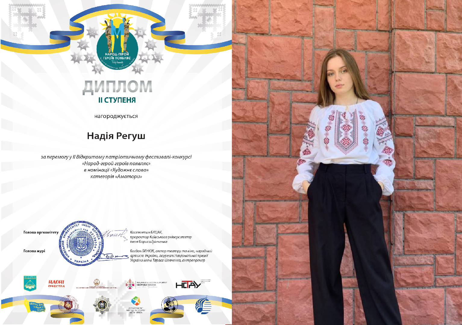 Нарешті діждалися результатів та нагород II Відкритого фестивалю-конкурсу «Народ герой – героїв появляє», у якому 13 червня 2023 року творчі студенти культурно-мистецького відділу ВТЕІ ДТЕУ брали участь.