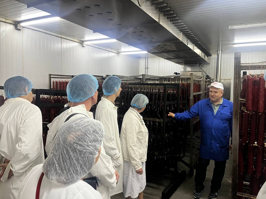 На підприємстві здобувачі вищої освіти мали можливість ознайомитися з технологією крафтового виробництва м’ясних виробів, зокрема, основними технологічними операціями та режимами виробництва, а також факторами та умовами, що впливають на якість продукції.