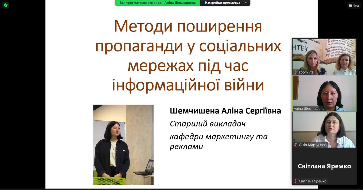 «Методи поширення пропаганди у соціальних мережах під час інформаційної війни», старший викладач Аліна Шемчишена;
