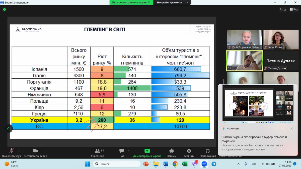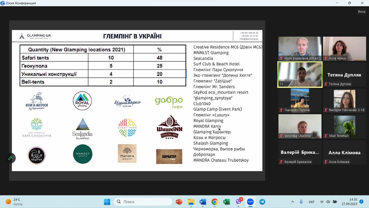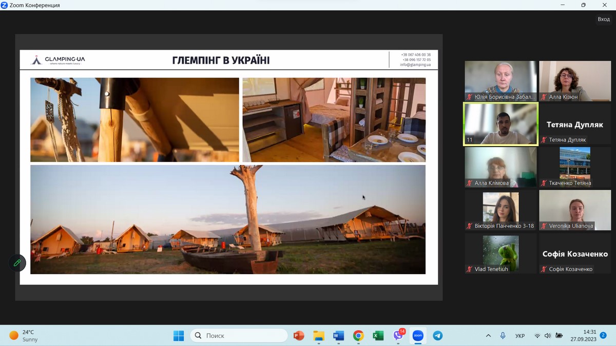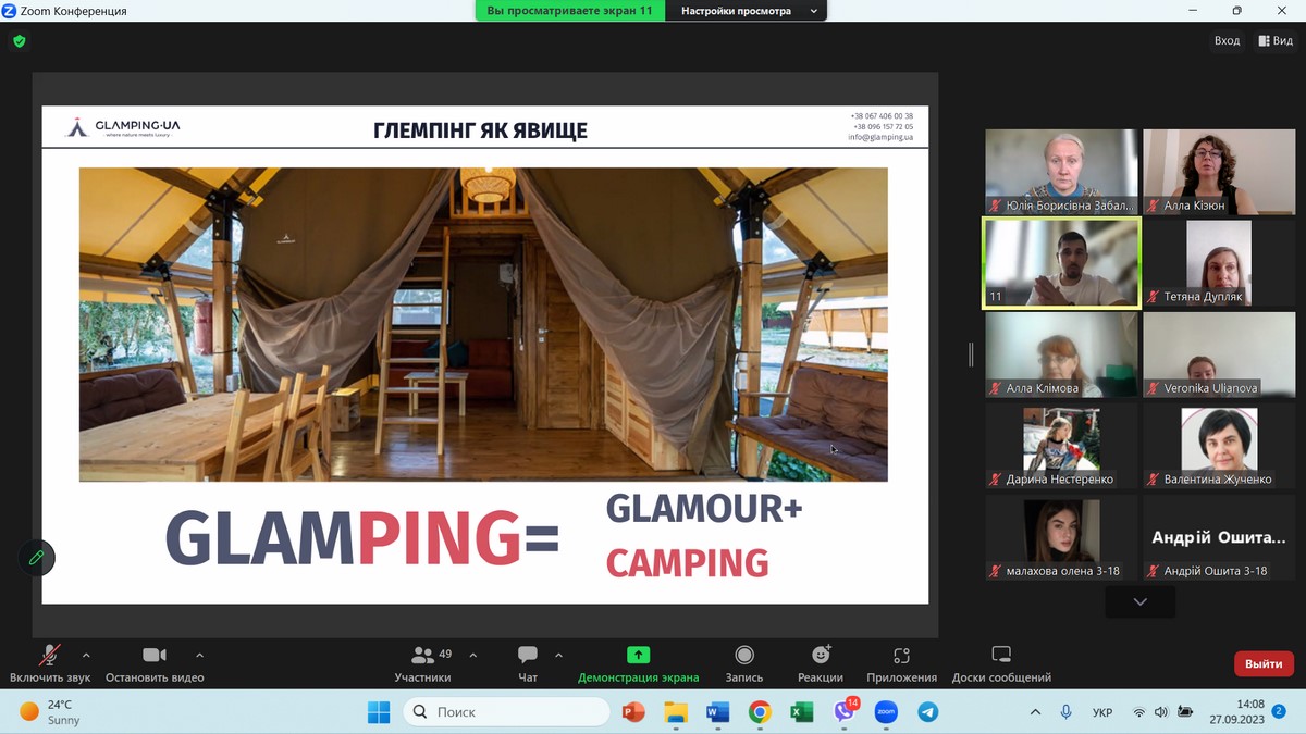 27 вересня 2023 року науково-педагогічні працівники кафедри туризму та готельно-ресторанної справи, здобувачі вищої освіти за спеціальностями 241 «Готельно-ресторанна справа», 242 «Туризм» / «Туризм і рекреація», прослухали гостьову лекцію на тему «Глемпінги – «легкі» рішення для створення закладів розміщення туристів», організовану Державним торговельно-економічним університетом у рамках відзначення Всесвітнього дня туризму.