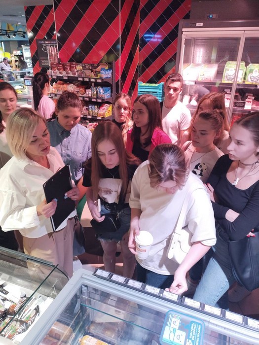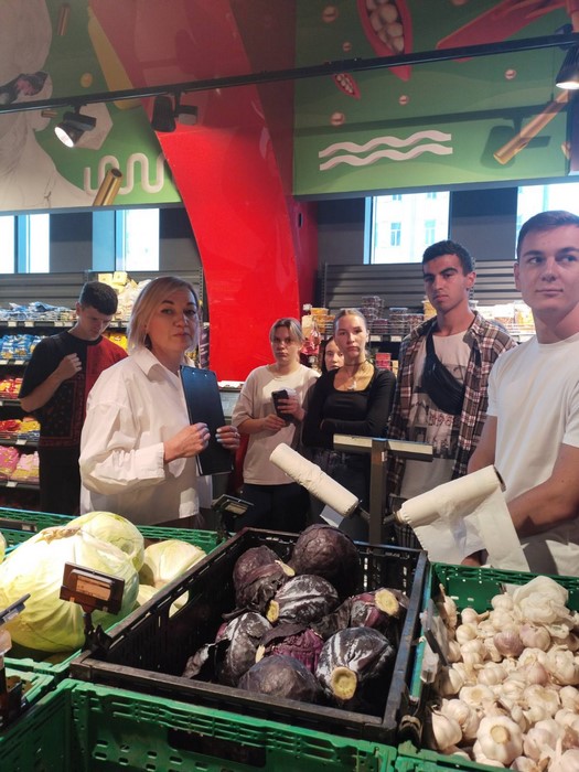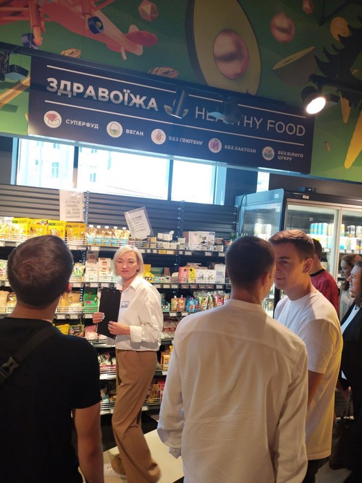 Важливим етапом знайомства з роботою супермаркету стало відвідування відділу «власного виробництва», де учасники завдяки відкритій зоні приготування познайомилися з технологією обробки та приготування м’яса, мучних кондитерських виробів. Пожвавлення серед учасників викликали продемонстровані в дії інновації на місці продажу, зокрема діджиталізація торговельних процесів у вигляді електронних цінників, які дозволяють економити папір при переобліку, проводити переоблік одним моментом у всьому магазині, зв’язувати інформацію про ціну на товар з бази даних, цінника та штрих коду на упаковці.