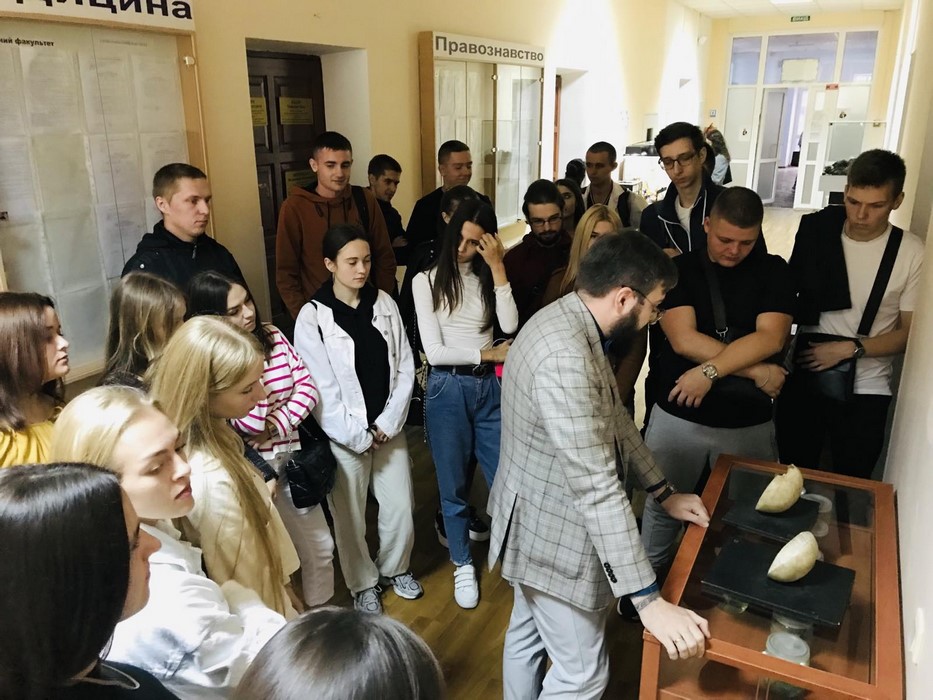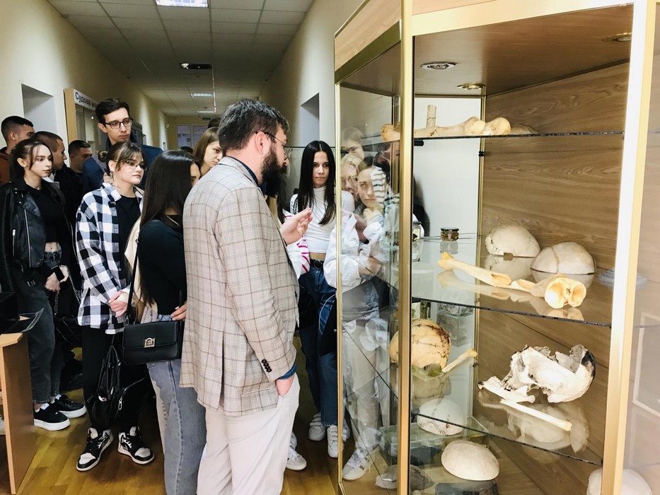 Після чого Валерій Гунас показав студентам експонати музею судової медицини, розповів про механізми утворення тілесних ушкоджень та способи їх дослідження.