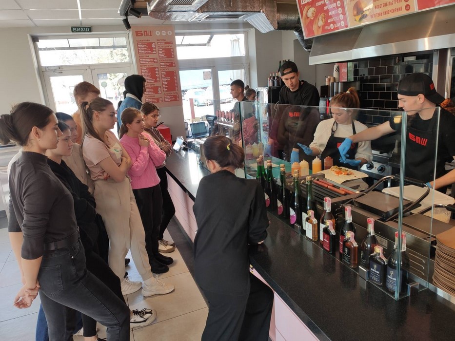 11 жовтня 2023 року здобувачі вищої освіти за спеціальністю «Готельно-ресторанна справа» взяли участь у майстер-класі з приготування страв фаст-фуду (шаурми) у ресторані «БПШ».