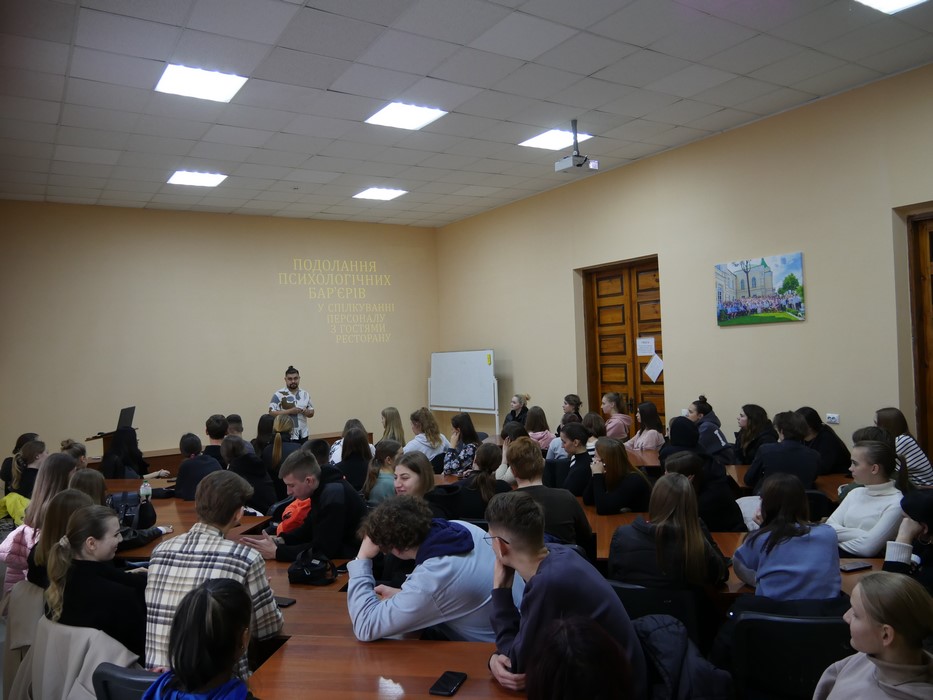 25 жовтня 2023 року науково-педагогічні працівники кафедри туризму та готельно-ресторанної справи та здобувачі вищої освіти спеціальності «Готельно-ресторанна справа» взяли участь у тренінгу «Подолання психологічних бар’єрів у спілкуванні персоналу з гостями ресторану». Запрошеним спікером був Владислав Волинець, керуючий кав’ярнею «Cherry point». Спікер відзначив, що через професійне спілкування підвищується якість сервісу, а позитивна атмосфера стає невід’ємною частиною відвідування ресторану. Це визначає перше враження гостя, допомагає вирішувати проблеми, створює зручність та підвищує рівень довіри. Було визначено, що ресторанний бізнес – це не лише про смак, але й про сприйняття, взаємодію та комунікацію.