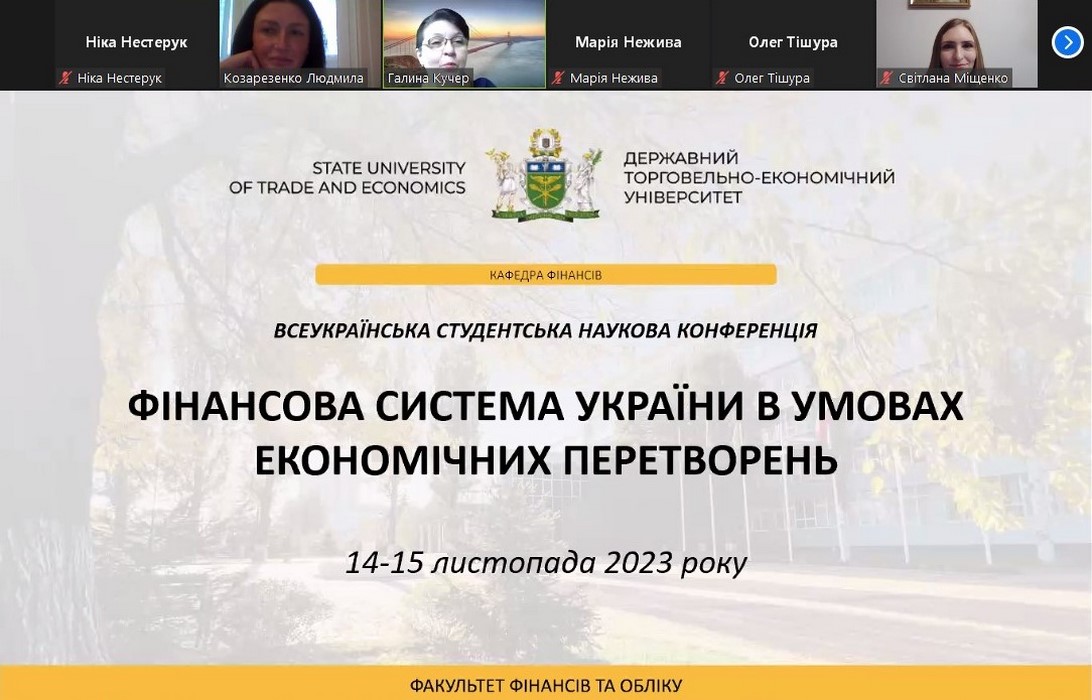 14 листопада 2023 року здобувачі освіти ВТЕІ ДТЕУ зі спеціальностей 072 "Фінанси, банківська справа та страхування" та "Фінанси, банківська справа, страхування та фондовий ринок" під керівництвом науково-педагогічних працівників кафедри фінансів стали учасниками Всеукраїнської студентської наукової конференції "Фінансова система України в умовах економічних перетворень".