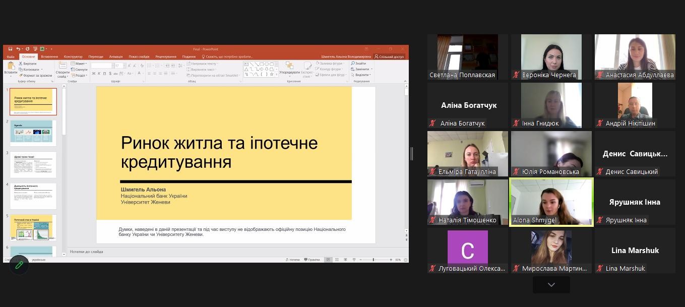 У заході взяли участь 45 осіб, серед них науково-педагогічні працівники кафедри фінансів ВТЕІ ДТЕУ; Альона Шмигель, головний експерт Департаменту фінансової стабільності НБУ, асистент, Geneva School of Economics and Management, Université de Genève; Дмитро Дема - к.е.н., професор, Поліський національний університет, м.Житомир; здобувачі вищої освіти спеціальності 072 "Фінанси, банківська справа та страхування" груп ФБСС-21д, ФБСС-22д, ФБСС-21мд, ФБСС-31д, ФБСС-41д, ФБСС-21дс ВТЕІ ДТЕУ та спеціальності 072 "Фінанси, банківська справа, страхування та фондовий ринок" груп ФБСФ-11дсп, ФБСФ-11дск, ФБСФ-11д(м).