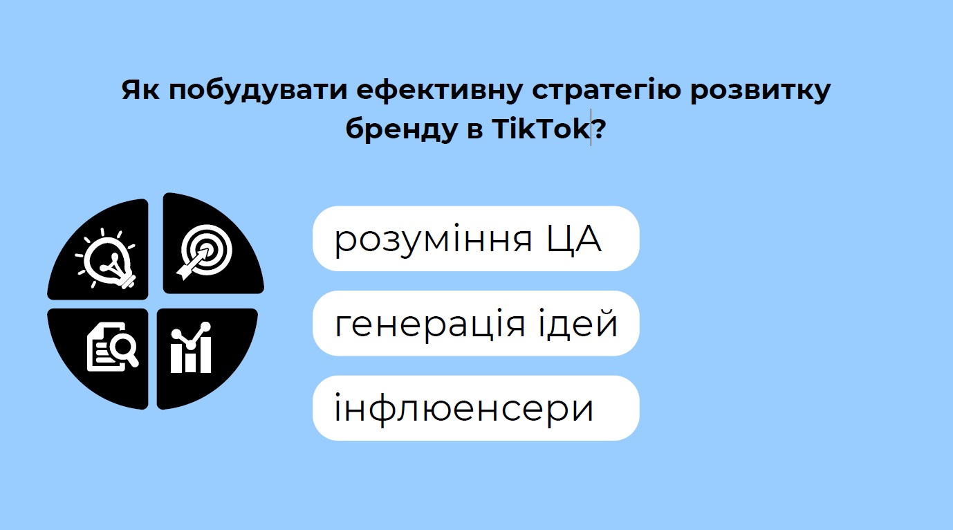 Важливим питанням було як побудувати ефективну стратегію розвитку бренду в «TikTok», як змінюються трендові звуки та мелодії, формується актуальність відеозображень.