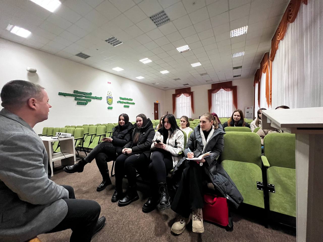 Також студенти мали змогу поспілкуватись із начальником відділу наукової роботи та міжнародної співпраці Вінницького торговельно-економічного інституту ДТЕУ. Юрій Довгань поділився своїм досвідом щодо питань організації науково-дослідної роботи.