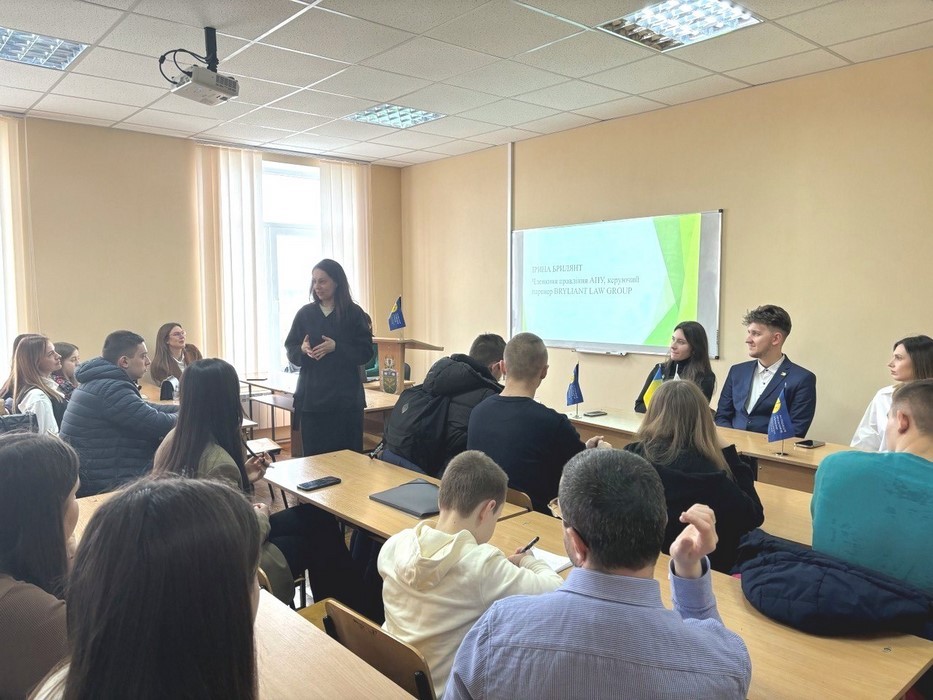 Перед студентами виступили: Ірина Брилянт, членкиня правління АПУ, керуючий партнер BRYLIANT LAW GROUP, яка акцентувала увагу на особливостях діяльності АПУ, перспективах участі у заходах, які проводить Асоціація Правників України;