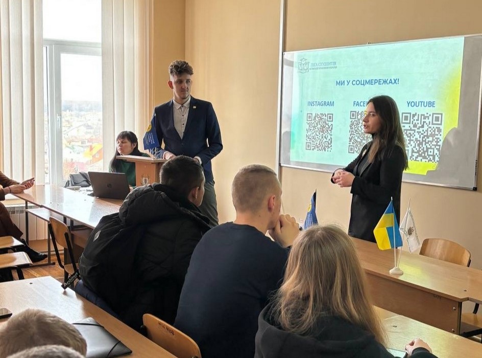 Данило Федик, заступник голови Ліги студентів АПУ та Кристіна Шпак, GR менеджер Ліги студентів АПУ, які розповіли, що участь у Лізі студентів АПУ надає можливість цілеспрямованим студентам-правникам відкрити для себе весь спектр можливостей та бенефітів.