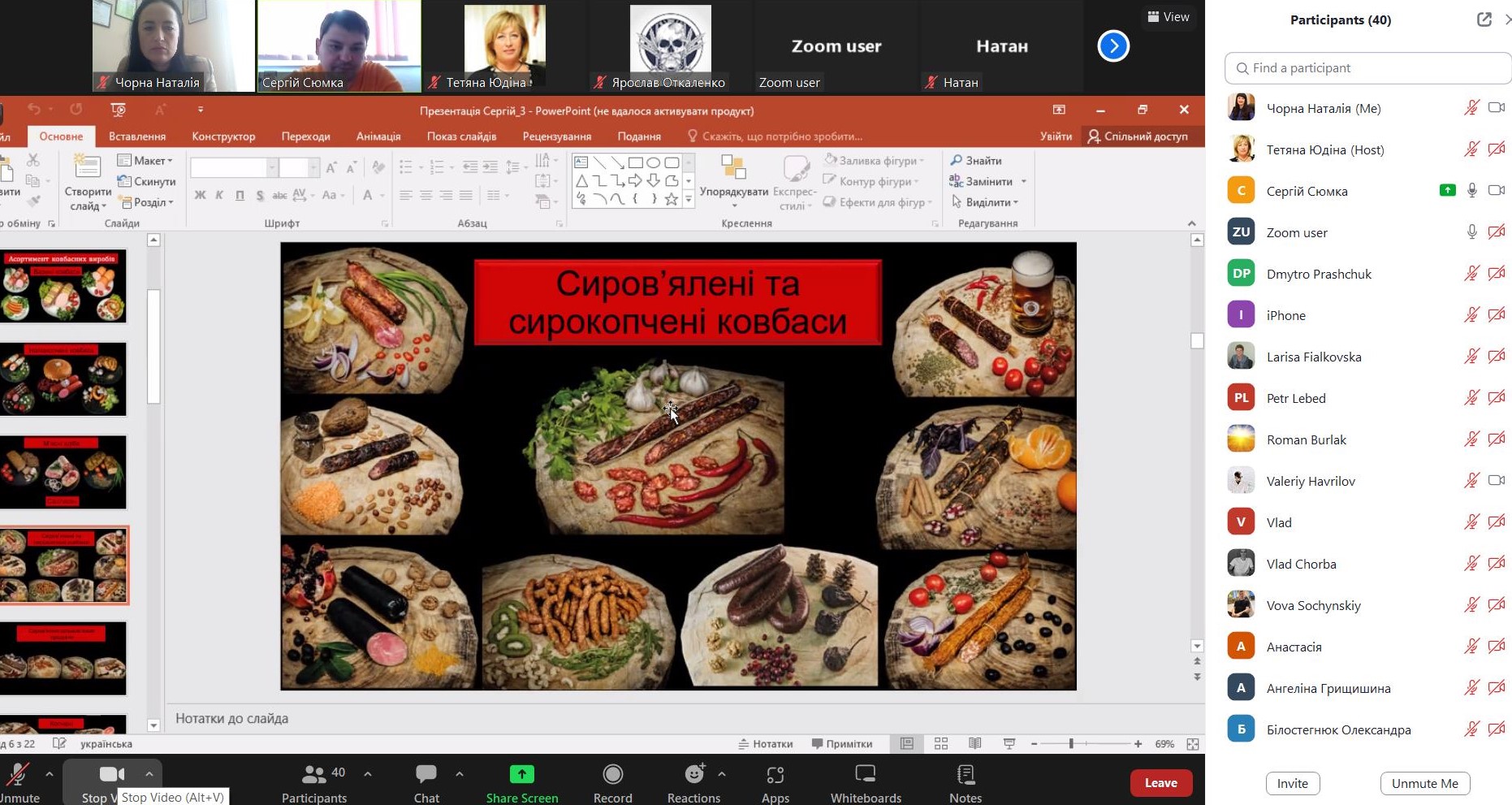 Для здобувачів вищої освіти проведено гостьову лекцію на тему «Інноваційні технології у виробництві крафтових м’ясних та ковбасних виробів»